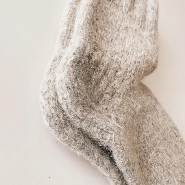 私の場合は少し大きめサイズでしたが、熱めのお湯で手洗いして履き続けるうちに、ウールが馴染んでちょうど良いサイズ感に。私にとって、寒い季節の必須アイテムです!