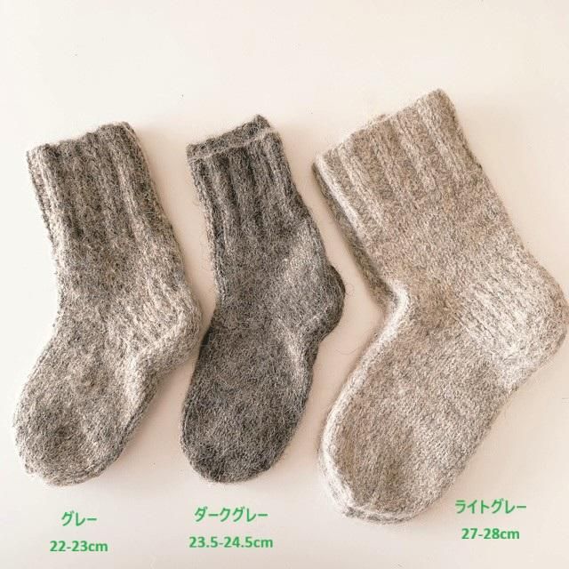 オルガおばあさんの100%ウールぬくもり手編み靴下【ライトグレー:27-28cm】